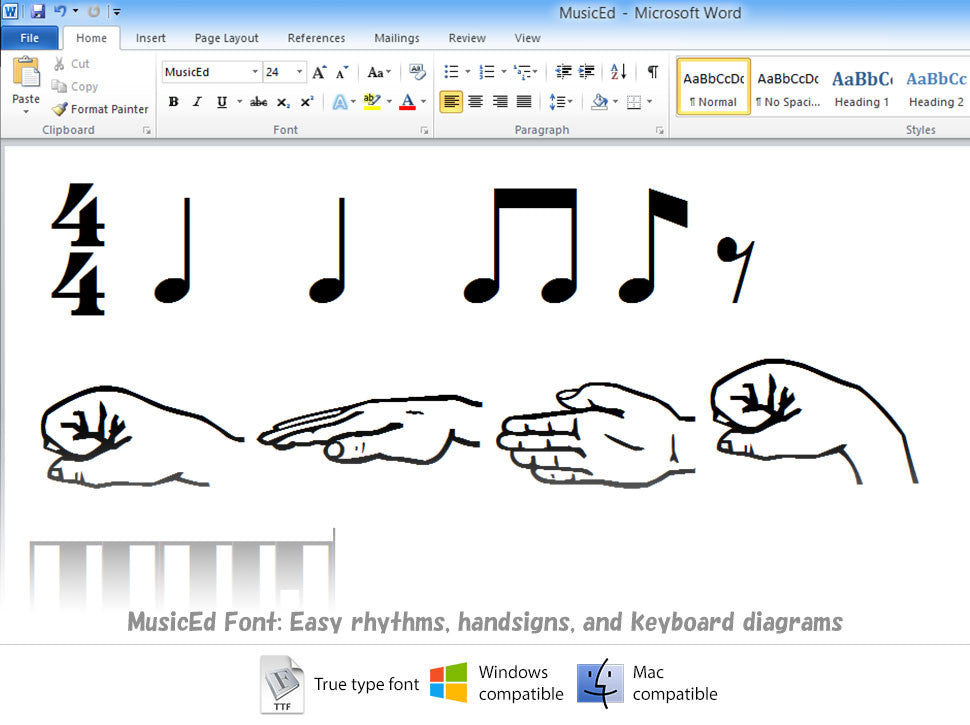 With the Music Ed font for PC and Mac, easily and effortlessly create basic musicianship materials without the cost and hassle of music notation software. Perfect for Kodály stick notation, simple worksheets, transparencies, and exams. Only your imagination limits the possibilities.